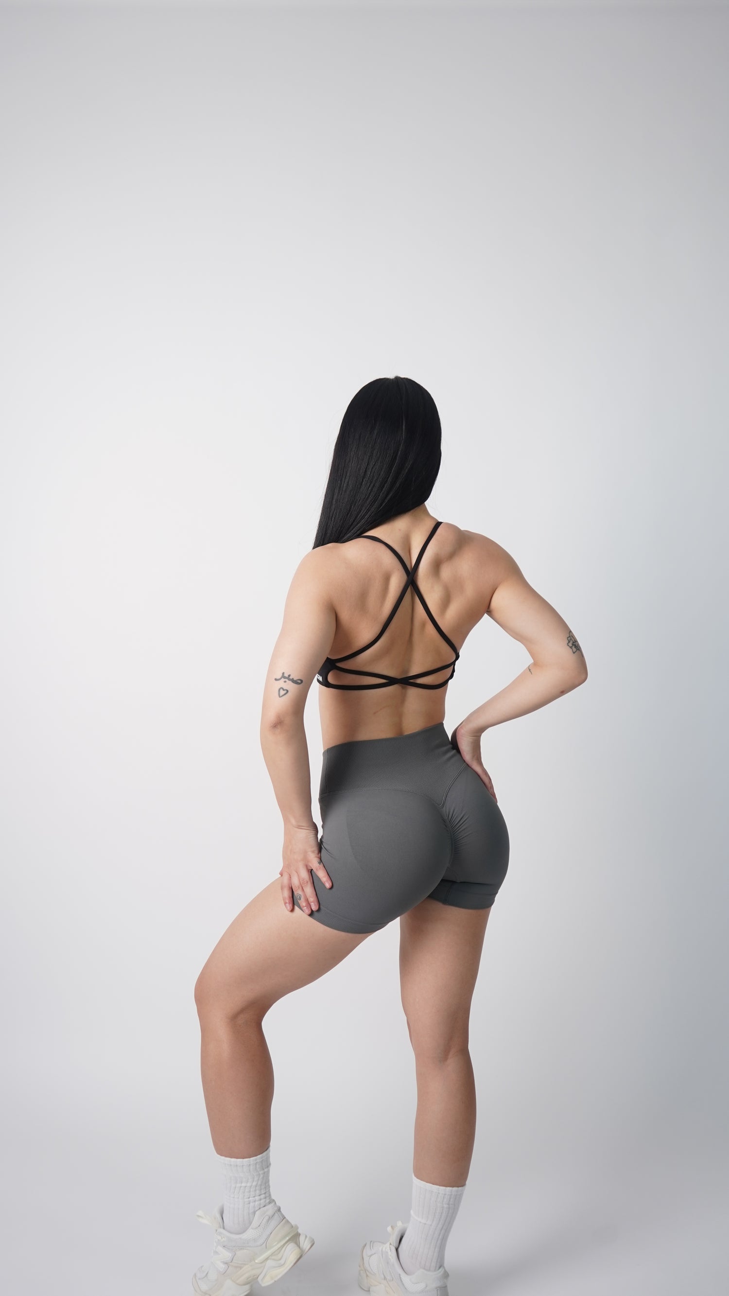 Featuring flattering v neck shaping with a feminist twist front, and open back detailing to show off the back gains. The adjustable cross over straps and removable padding means you stay supported and comfortable during your workouts.